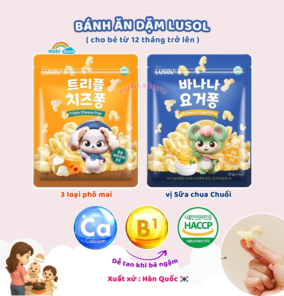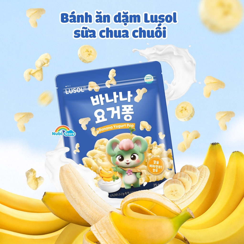 Bánh ăn dặm Lusol giòn giòn - xốp xốp - mềm mềm mang hương vị ngọt tự nhiên của Sữa chua Chuối