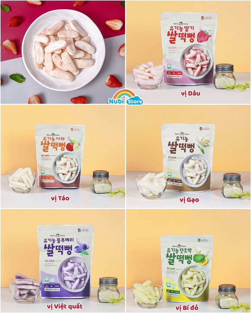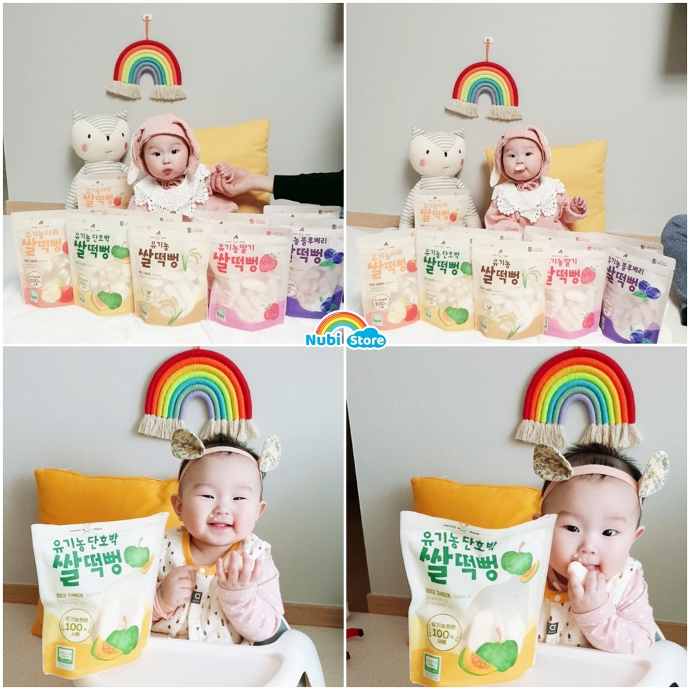 Bánh được rất nhiều Mom lựa chọn cho bé bởi hương vị thơm ngon tự nhiên từ gạo lứt hữu cơ, trái cây Hữu cơ, rau củ Hữu cơ