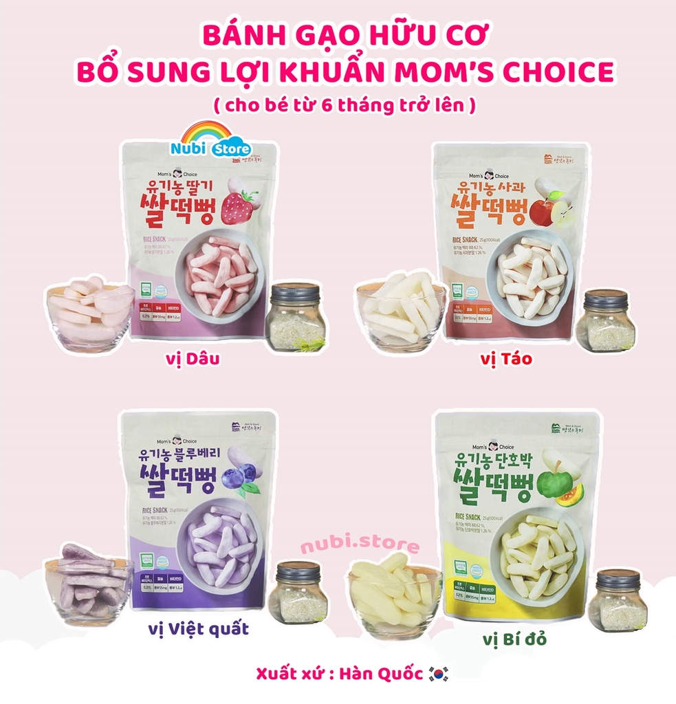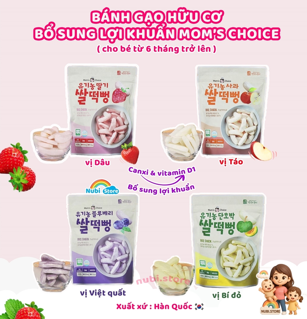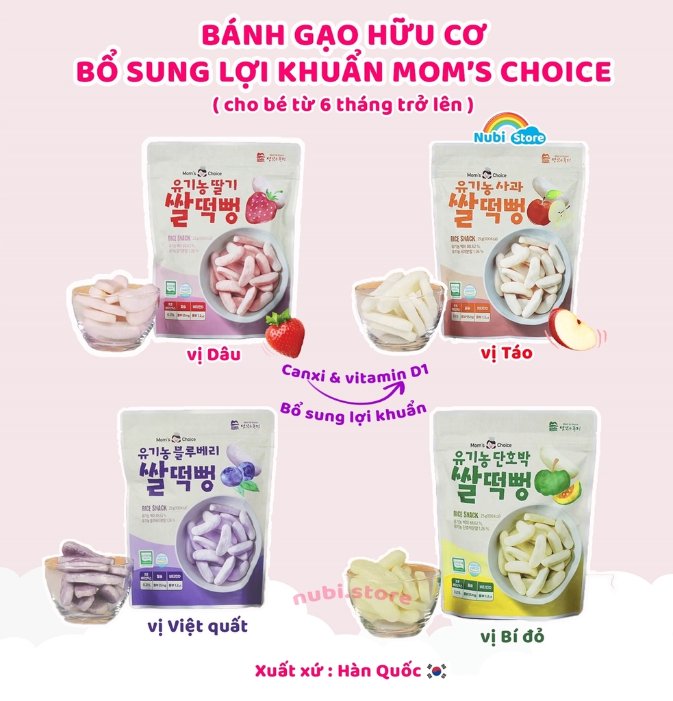 Bánh gạo Mom's Choice bổ sung thêm lợi khuẩn hỗ trợ bé tiêu hóa tốt hơn
