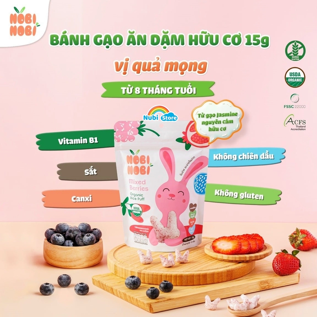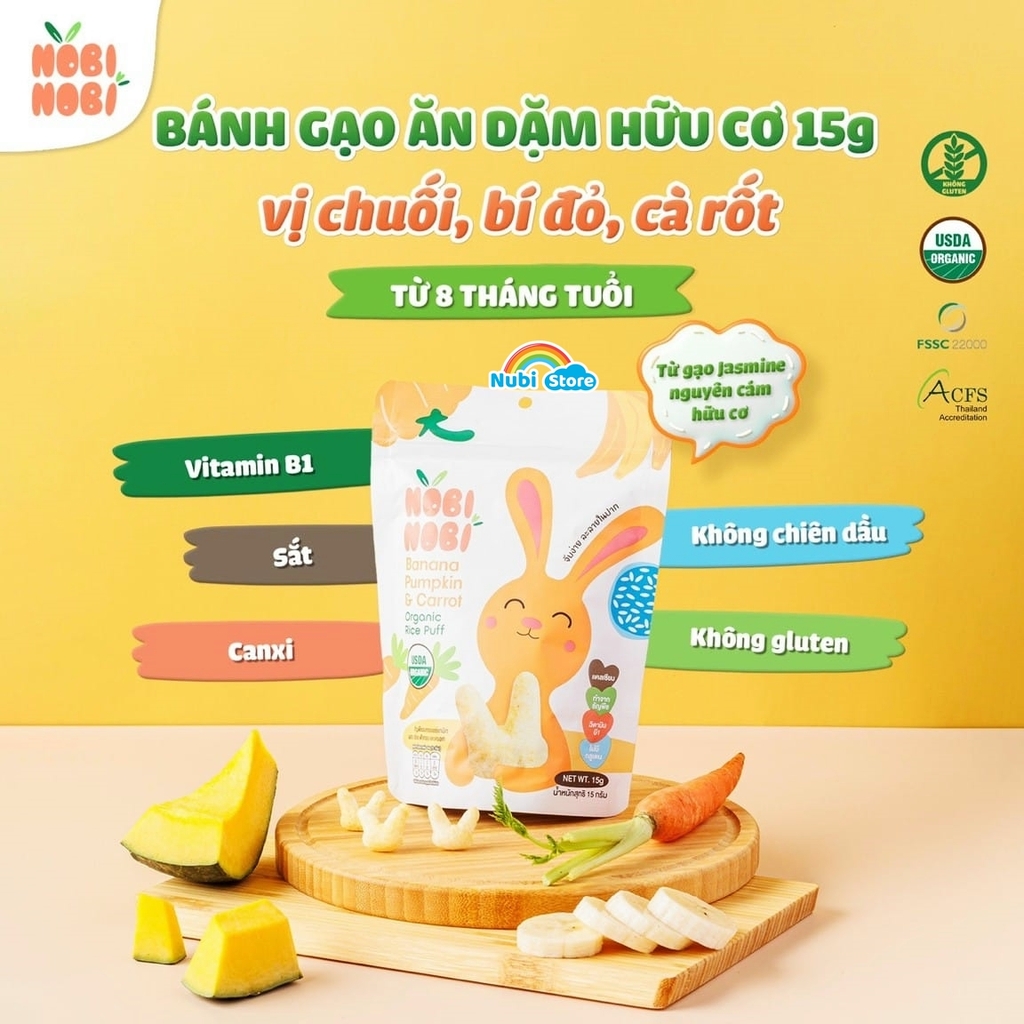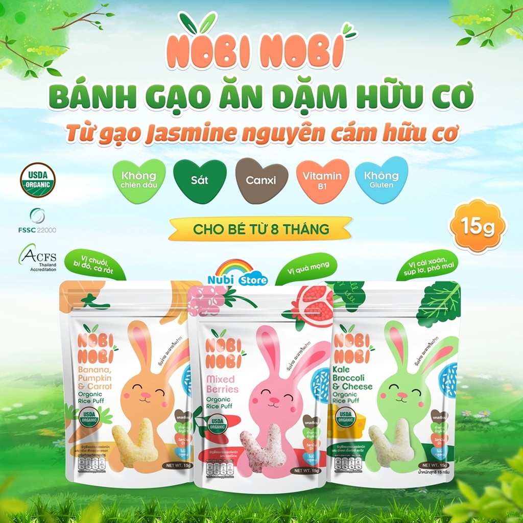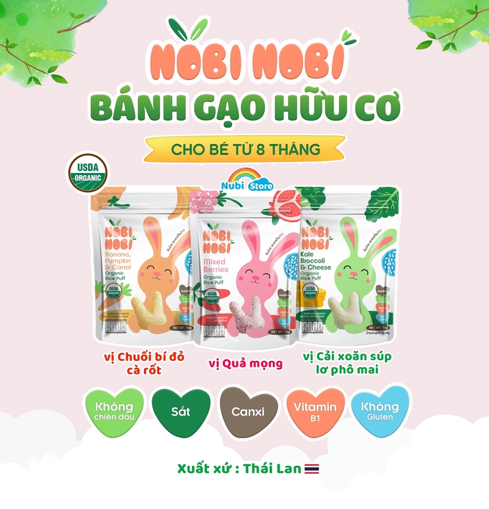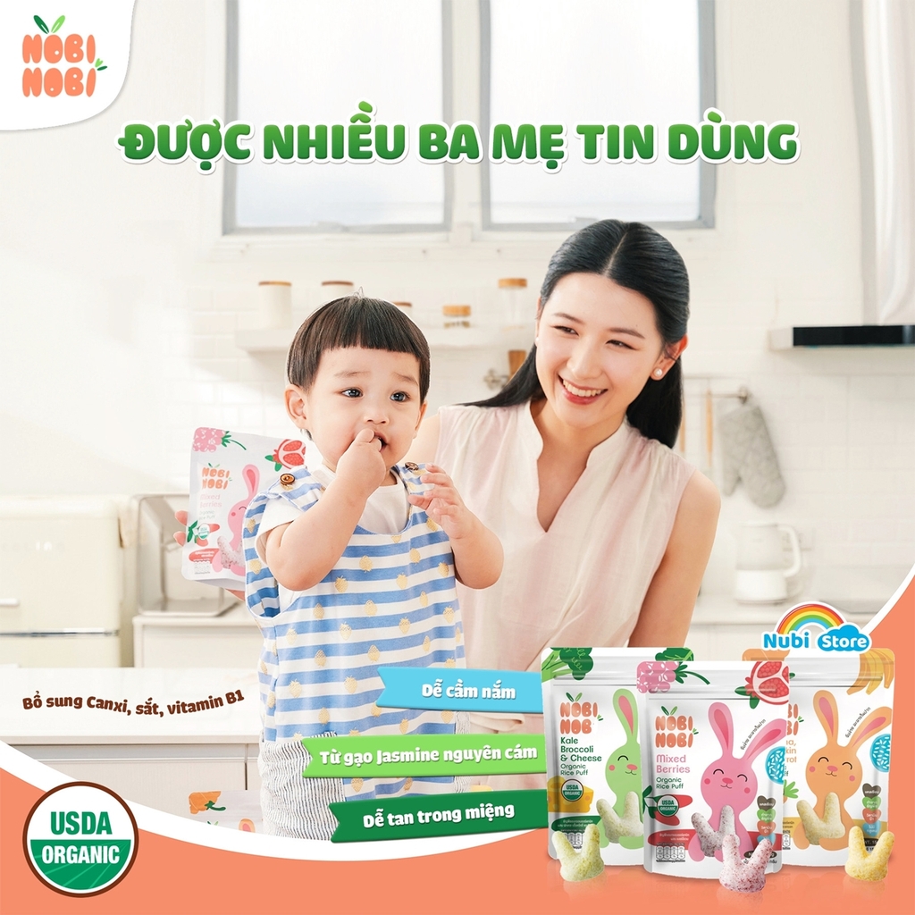 Bánh được rất nhiều Mom lựa chọn cho bé bởi hương vị thơm ngon, bổ tự nhiên từ Gạo Jasmine hữu cơ, Hoa quả và Rau củ Hữu