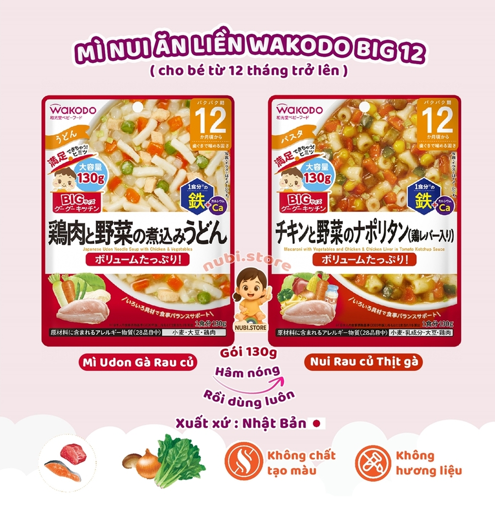 Mì, nui ăn liền Wakodo Big 12 - Món mới mẹ có thể bổ sung vào thực đơn ăn dặm giàu dinh dưỡng và tập ăn thô cho bé