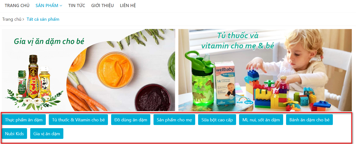 - Click vào từng danh mục sản phẩm để tìm kiếm