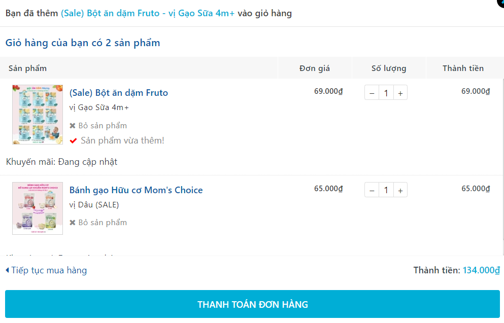 - Sau khi tìm được sản phẩm cần mua, bạn tiến hành đặt hàng hoặc nếu muốn mua thêm các sản phẩm khác bạn hãy thêm sản phẩm vào giỏ hàng và quay trở lại sản phẩm khác để tiến hàng mua thêm.
