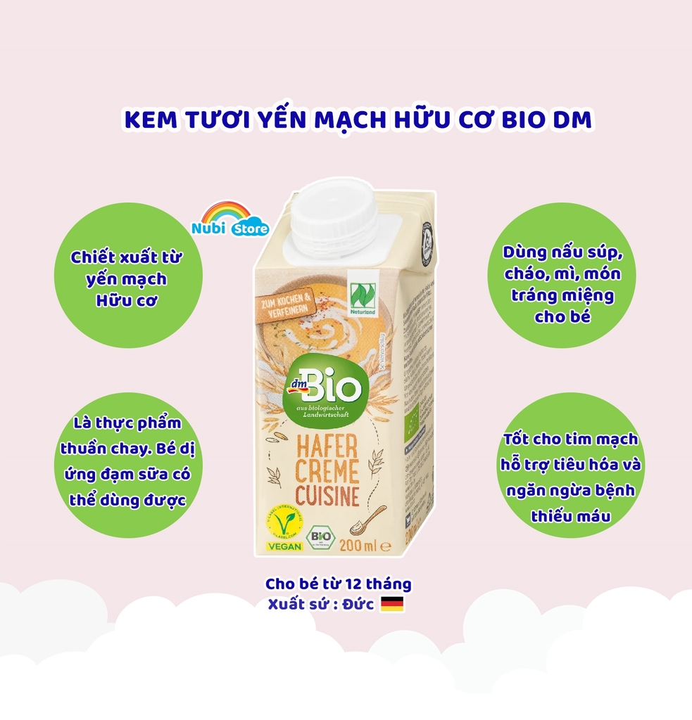 Kem tươi yến mạch Hữu cơ Bio DM