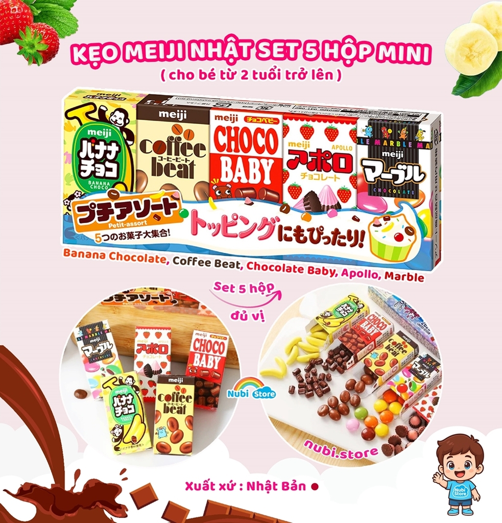 Kẹo Meiji Nhật set 5 hộp Mini đủ vị
