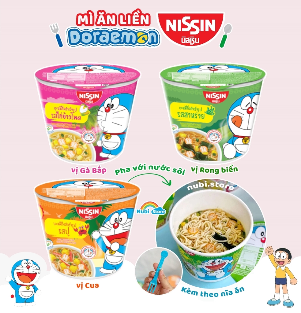 Mì ăn liền Doremon Nissin dạng hộp tiện lợi - 3 phút là có tô mì cho bé rồi ạ