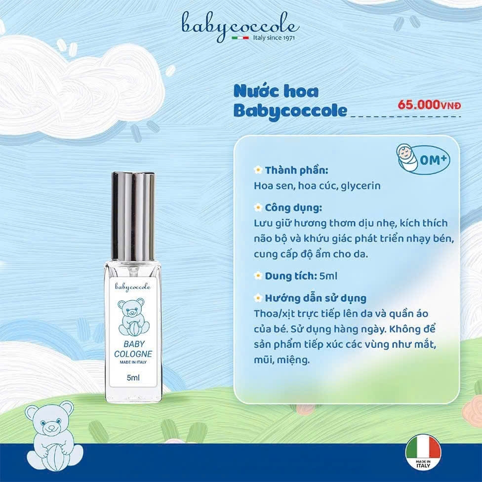 1. Nước hoa chiết xuất hoa sen Babycoccole mang trọn hương thơm dịu nhẹ của nước Ý. Giàu tinh chất tự nhiên và tinh khiết, nhẹ nhàng như sự vuốt ve, lý tưởng cho làn da em bé và cả bé sơ sinh.