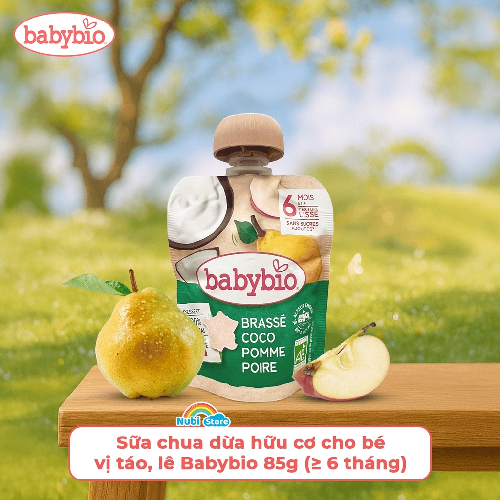 🍏 Sữa chua Hữu cơ Babybio được làm từ các thành phần Hữu cơ gồm hoa quả xay nhuyễn cùng sữa dừa sánh mịn, ngon tuyệt. Sản phẩm đạt chứng nhận Hữu cơ của châu Âu, hoàn toàn không chứa chất bảo quản, an toàn tuyệt đối cho bé.