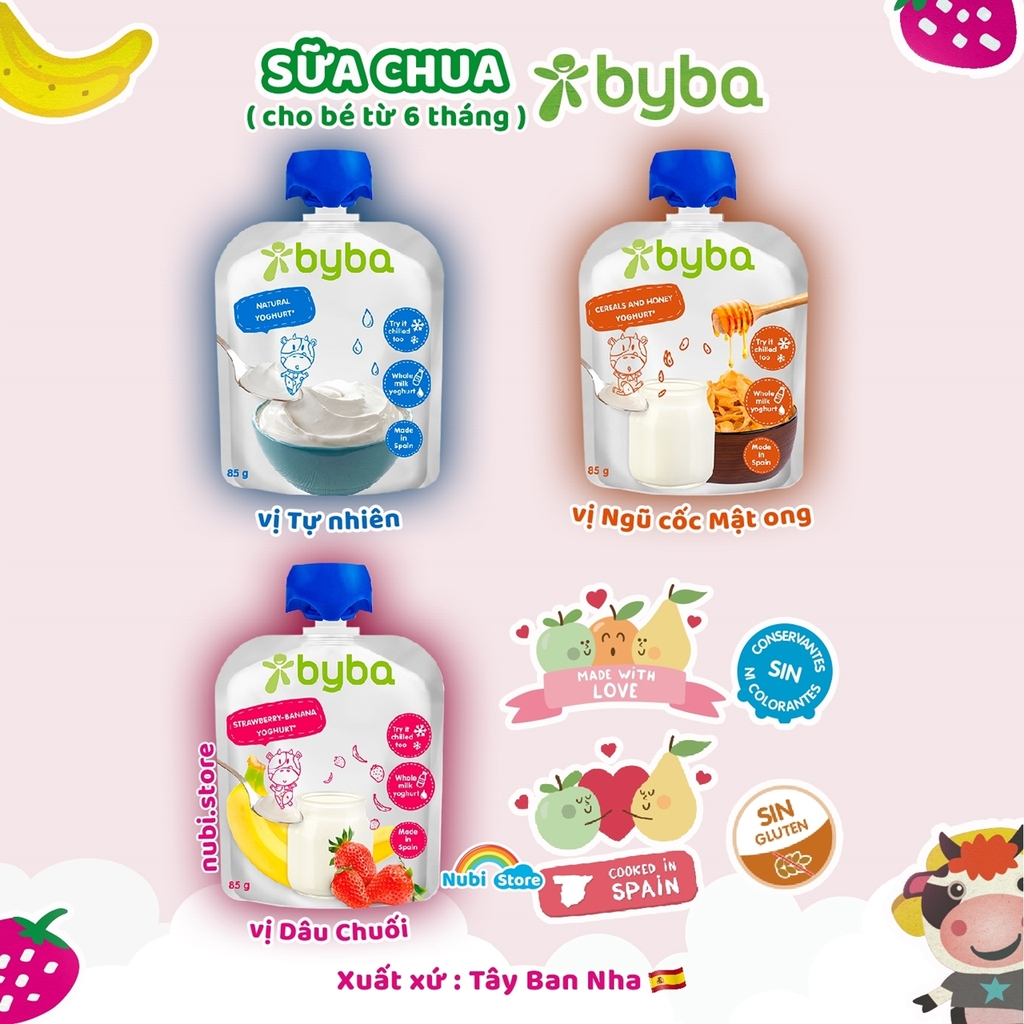Sữa chua Byba được làm từ hoa quả xay nhuyễn cùng sữa sánh mịn, ngon tuyệt. Hoàn toàn không chứa chất bảo quản, an toàn tuyệt đối cho bé.
