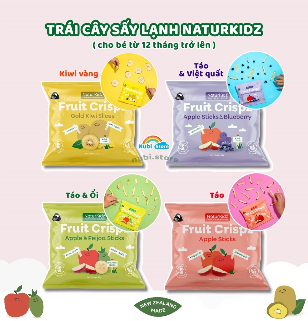 Bé nào lười ăn hoa quả thì về với đội nhà Nubi nhé. Trái cây sấy lạnh NaturKidz đến từ New Zealand sẽ làm bé thích mê luôn. Sản phẩm mới và có lẽ Nubi là một trong những shop bán đầu tiên tại Việt Nam.